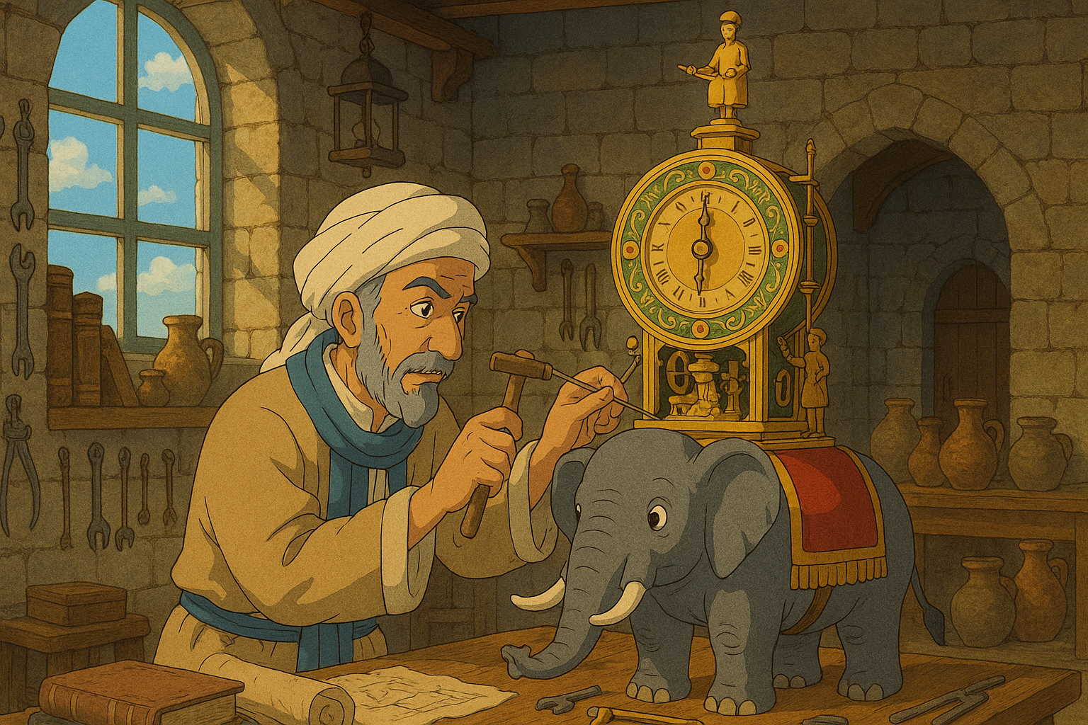 800 years ago, a brilliant Muslim engineer in southeast Anatolia amazed the world with his incredible machines: water clocks, pumps, combination locks, and even mechanical robots that could pour a drink!